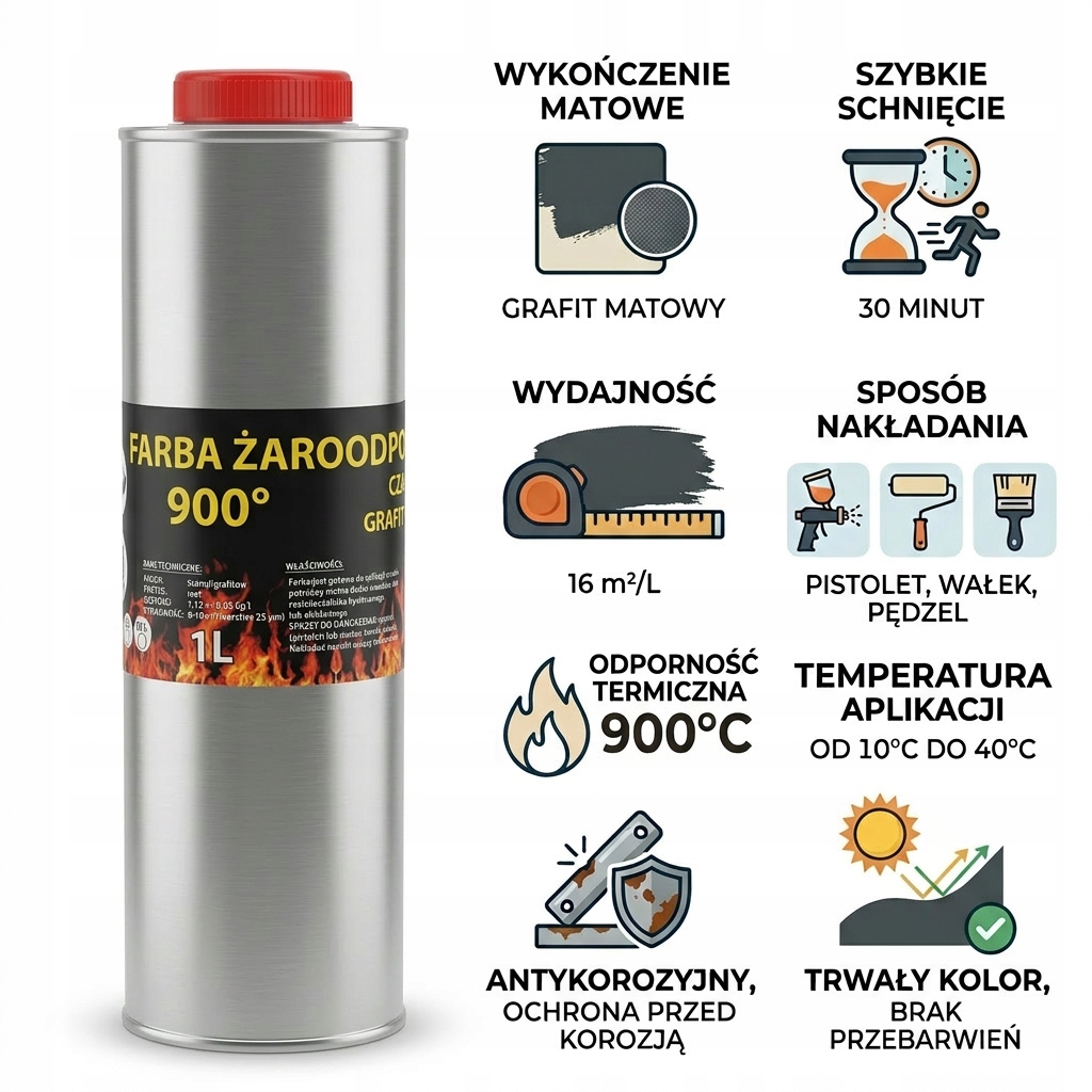 • Idealna do kominków, pieców, grilli, rur i elementów metalowych