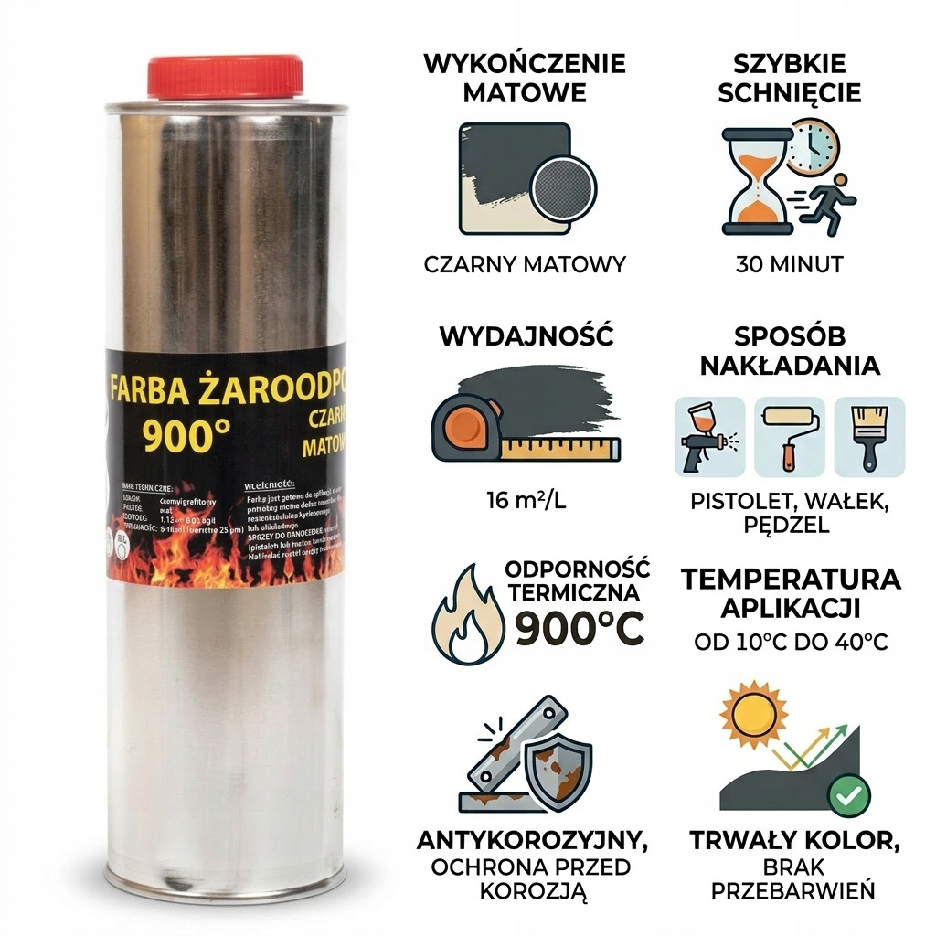 • Idealna do kominków, pieców, grilli, rur i elementów metalowych