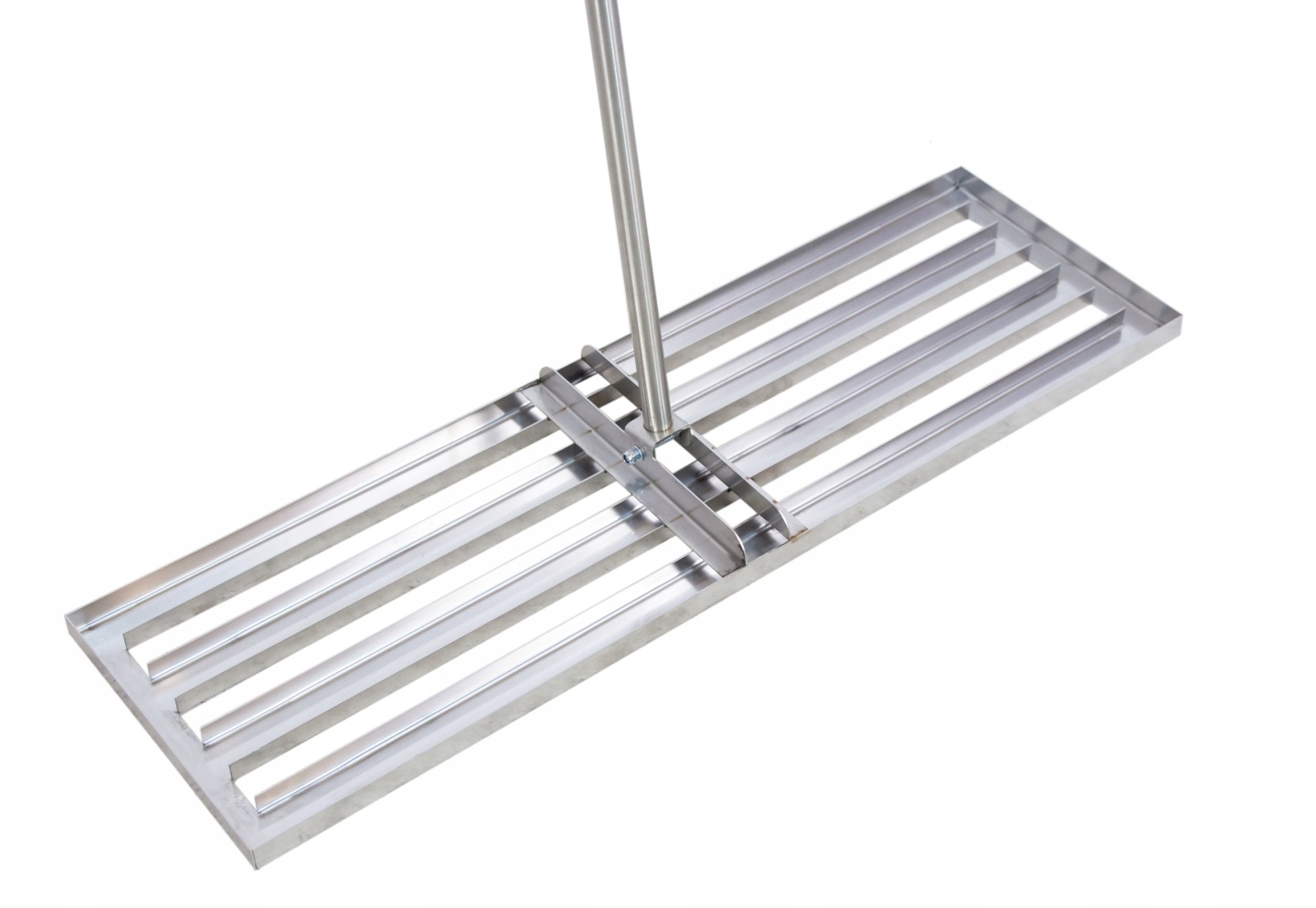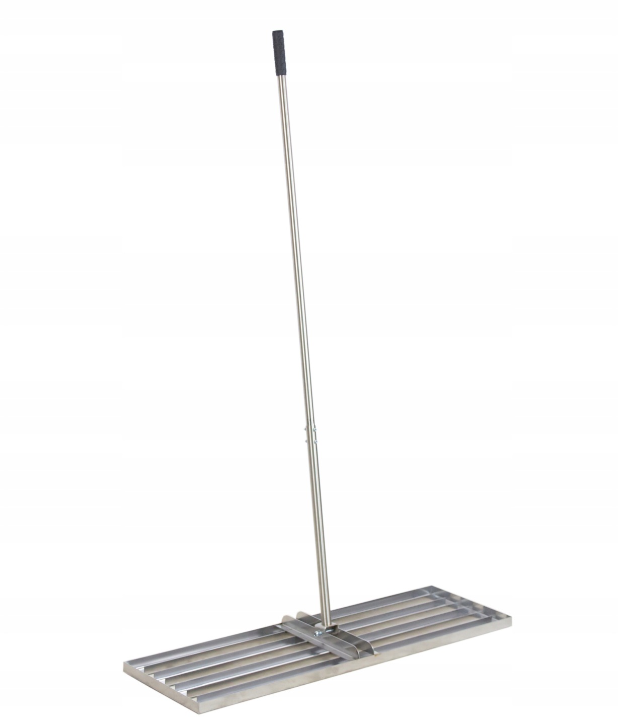 Solidna stalowa ramka o wymiarach 100 × 30 cm została wykonana z kątownika o grubości 2 mm, co zapewnia trwałość i stabilność podczas pracy. Trzonek z rury o średnicy 26 mm, składający się z dwóch skręcanych części, pozwala dopasować długość do preferencji użytkownika, zwiększając komfort użytkowania.